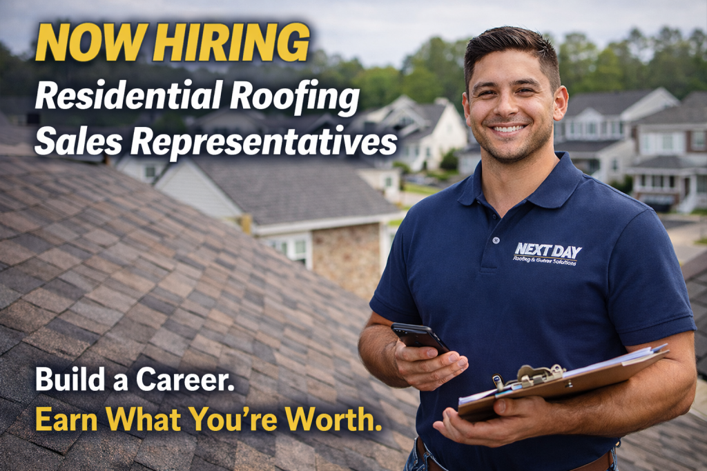 Next Day Roofing & Gutter Solutions is expanding across Ohio and Indiana, and we’re looking for motivated individuals to join our residential roofing sales team.