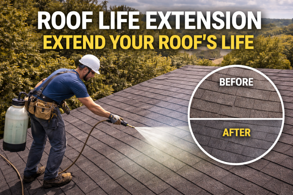 At Next Day Roofing & Gutter Solutions, our Roof Life Extension Service helps homeowners and property owners preserve their existing asphalt shingle roof while maintaining protection, appearance, and reliability.